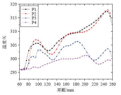 Fig.4 The temperature distribution of each sampling point in the arc quenching chamber |
