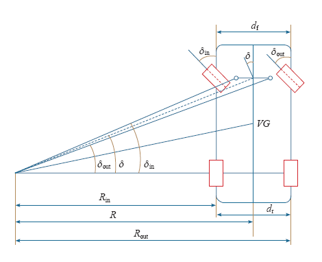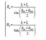 其中,旋转角速度为ω0 = (v/Rc)。若ω0用后轴中心速度表示,则ω0 = (vf + vr)/2Rr,其中vf和vr为两个驱动轮的线速度,即前轮的线速度。