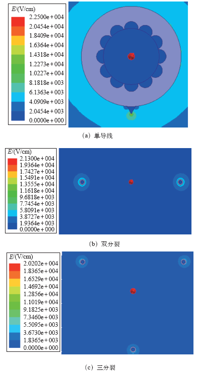 | 图6 三种导线覆冰30min 表面电场分布 |