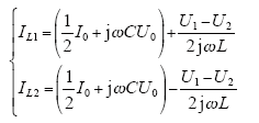 由式(2)可以得出以下结论:当U1 = U2时,IL1 = IL2 = (I0/2) + jwCU0,两个逆变器均分负载电流;当U1 ≠ U2时,IL1、IL2由负载电流分量和环流分量两部分组成,两个逆变器对负载电流的分担是不均衡的;当U1和U2同相位时,不同幅值环流体现为无功分量,对电压高的逆变器环流呈容性,对电压低的逆变器环流呈感性;当U1和U2幅值相等时,相位超前者环流分量为正有功分量(输出有功),相位滞后的环流分量为负有功分量(吸收有功);当U1和U2既不同相位又不等幅值时,则环流分量中既有无功分量,又有有功分量。