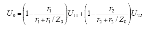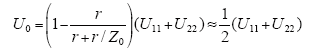 若r1 = r2 = r,则有r<<Z0,则上式可简化为