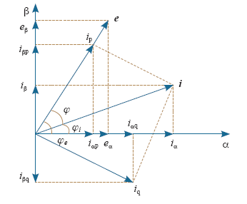 图1 αβ 坐标系中的电压、电流矢量图 |