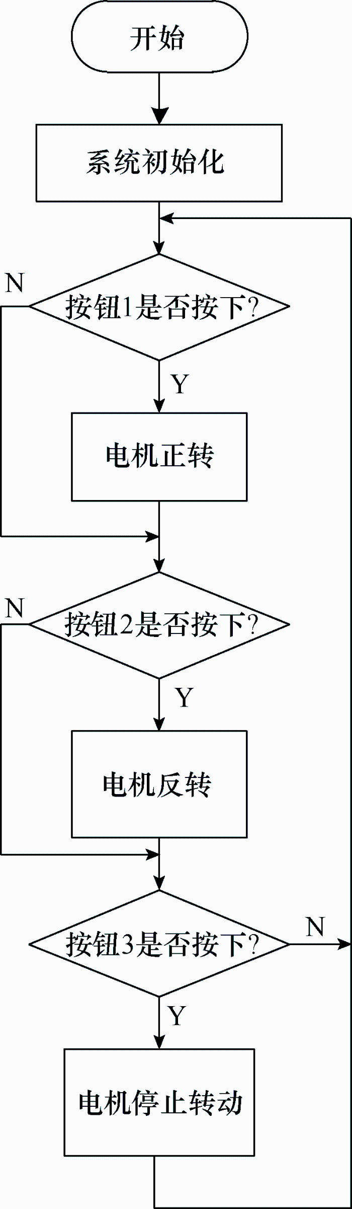 综合考虑已选用的步进电机和驱动模块,最终选取基于ARM Cortex-M3内核的STM32处理器。该处理器的数据处理能力为1.25DMips/MHz,相比于同类型芯片,STM32在数据处理方面有着非常明显的优势;相较于51、AVR系列单片机,STM32具有结构简单、开发难度低、功能强等优势,在各领域的应用十分广泛。本文通过三个按钮分别控制电机的正转、反转及停止,三个按钮不可同时按下,一个按钮控制一个状态,从而实现验电杆的自动伸缩。步进电机的转向同其绕组的通电顺序有关,将按钮信号作为系统的输入信号,ARM单片机控制输出相应的脉冲信号和方向信号,该信号通过驱动器功率放大,达到步进电机所需要的驱动电压和驱动电流,从而控制步进电机动作。