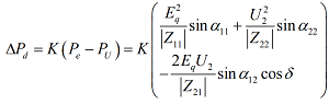 式中,Pe与PU分别为发电机功率和受端系统功率,Z11、Z22、Z12、Z21如下所示[17]