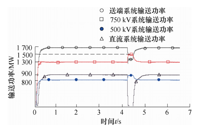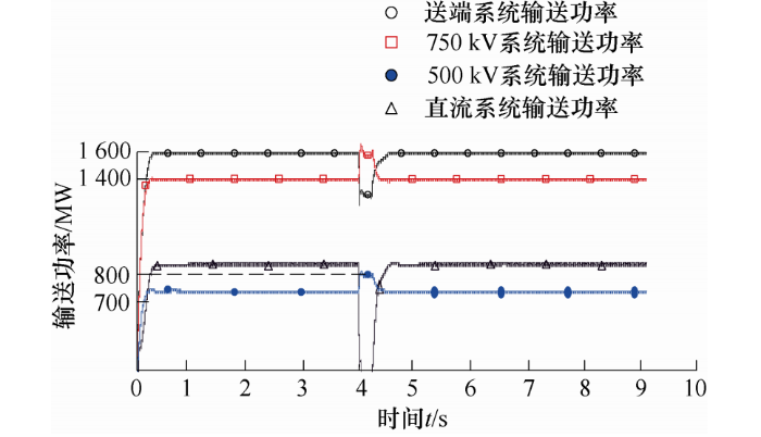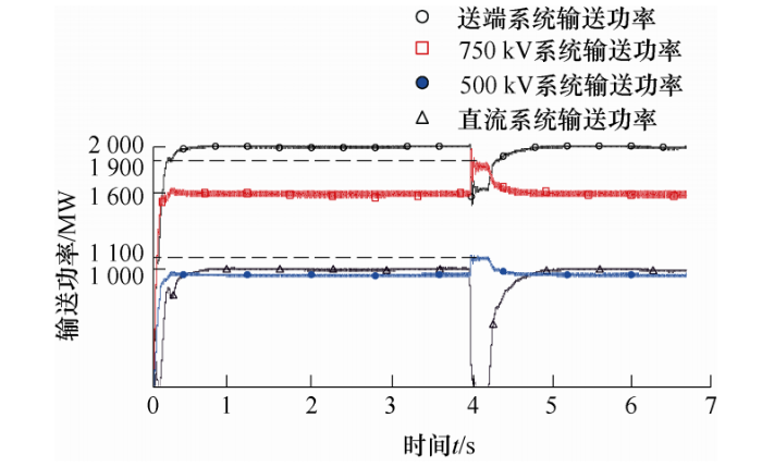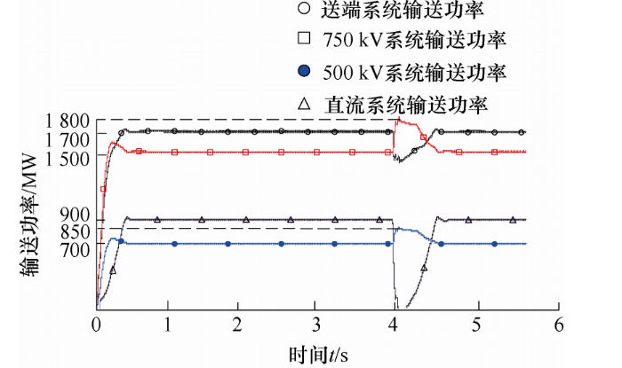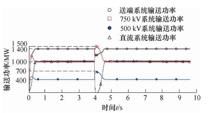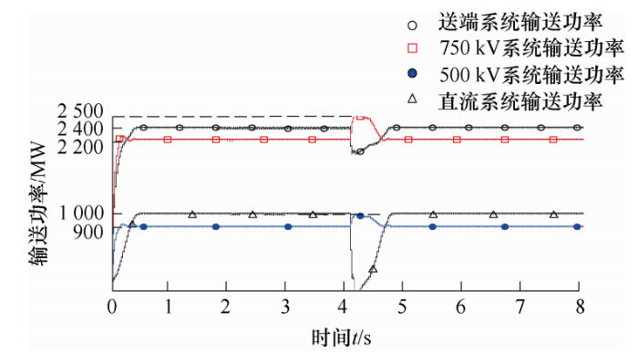 综上所述,从频率稳定性角度考虑,当输送距离小于或等于500 km时,应采用非并联结构的交直流输电系统;当实现大规模新能源跨区域远距离外送时,应采用交直流并联输电模式。