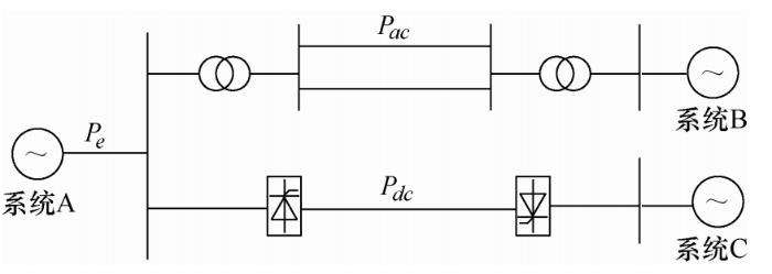 目前关于交直流混联输电系统频率稳定性的研究有:文献[6]以非并联运行结构的交直流混联输电系统为研究对象,提出直流系统与交流母线之间的功率转移时电压下降系数这一量化指标,在直流系统发生故障时能够更好地反映出系统当中电压下跌情况,为电网的安全运行提供理论指导,但未考虑并联运行结构的混联输电系统频率稳定性。文献[7]通过比较现有并联结构的交直流混联输电系统电压稳定评估体系,提出分电压等级的综合考虑有功、无功潮流影响的电压稳定在线评估指标,简化了计算模块、提高了运算速度,但未考虑潮流转移时频率稳定性。文献[8]在研究交直流混联系统稳定性基础上提出了频率紧急协调控制系统(Frequency emergency coordination control system,FECS),能够根据直流系统故障类别以及故障后对受端系统频率的影响进行紧急控制,但只研究了受端系统频率,未考虑不同落点处的交流输电通道频率稳定性。文献[9]根据特高压交直流混联系统故障特点,提出了特高压交直流混联电网安全分析方法,对川渝电网运行稳定的措施进行了改进,但未考虑输电系统远距离输送时的频率特性。文献[10]总结电网面临的问题提出特高压交直流电网安全应对措施,为混联电网后续研究提供了理论指导,但未细化不同运行条件下的混联电网频率稳定性问题。文献[11]针对远距离交直流并联输电通道联络线总有功损耗为最小目标,建立了交直流并联输电通道联络线路功率优化模型,简化了系统各参量之间的描述关系实现了各区域间的经济运行,但未考虑故障状态下的功率转移。文献[12]提出了高压直流孤岛运行的低频振荡抑制措施,解决了高压直流系统孤岛运行的低频振荡问题,但未考虑交直流混联系统频率稳定性问题。文献[13]提出了特高压直流系统孤岛运行时的频率稳定控制策略,未考虑交直流耦合关系。