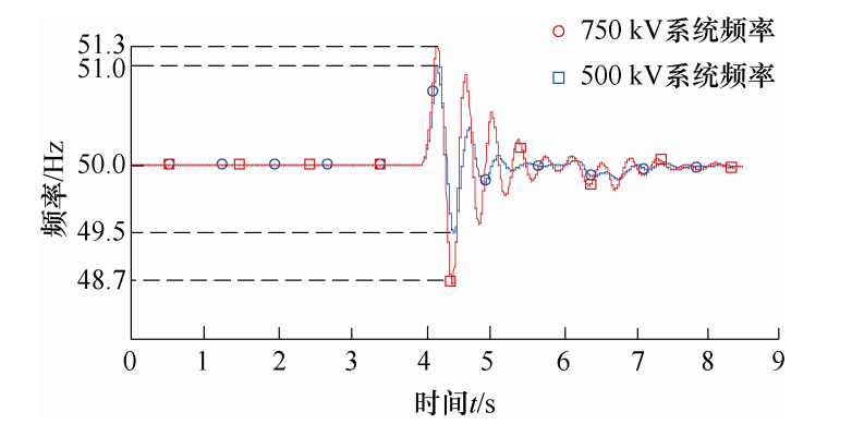 900 km交直流非并联系统频率波动曲线