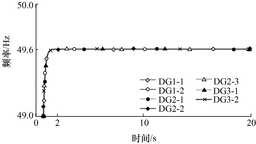 微网1、2、3下垂控制频率波形图