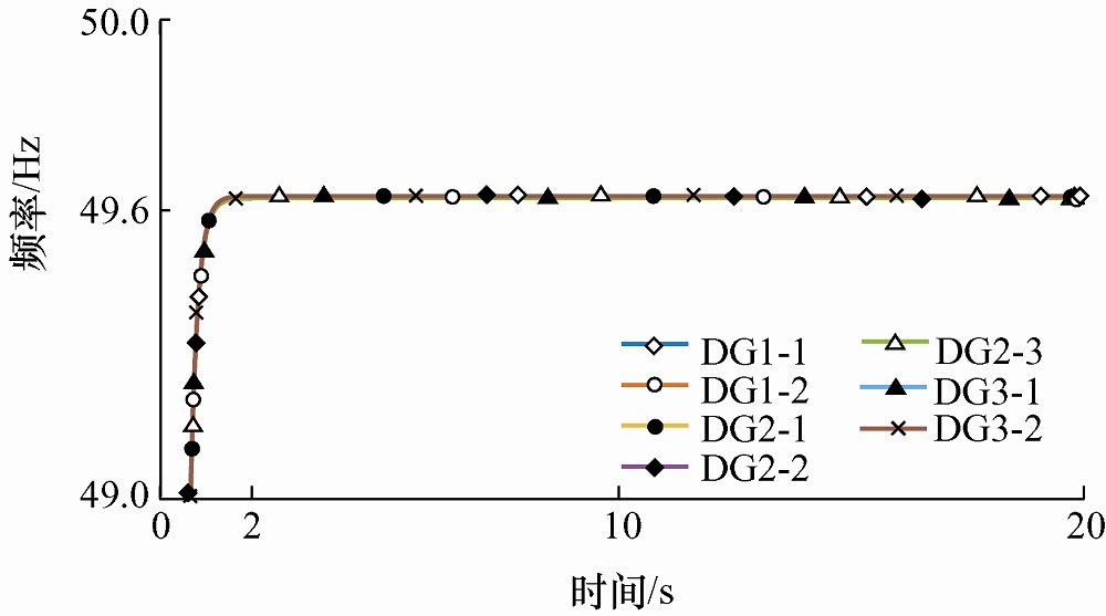 微网1、2、3广义下垂控制频率波形图