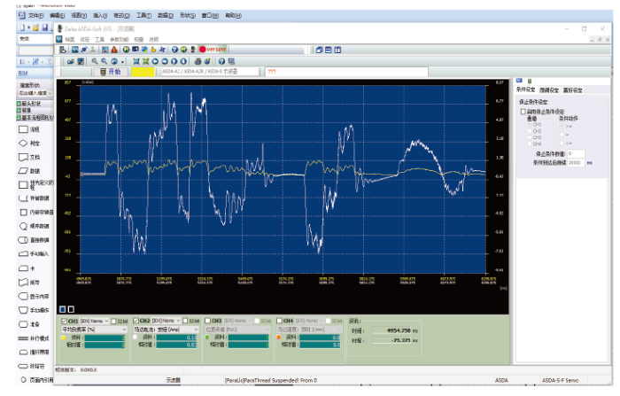 (4) 通过波形测试,可以得出伺服器会估算负载大小,并随时调整转矩去匹配负载。通过实时改变电流大小,来实现调整扭矩。因为电流和扭矩基本成正比关系,所以可以看到电流和负载也成比例。