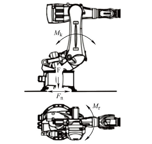 机械臂工作过程中会对安装底座产生特定方向的力和力矩,通过对安装底座进行应力分析,判断所受到的应力是否达到相关技术指标。图9为机械臂所产生的力和力矩以及方向。