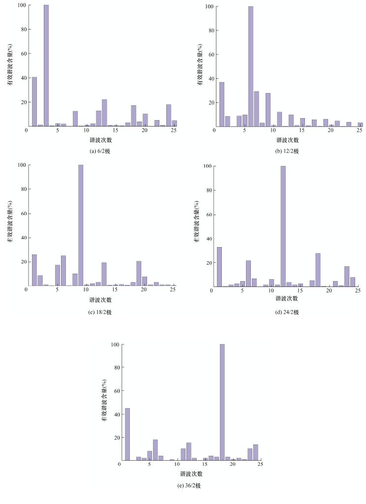不同极数配合气隙磁通密度谐波含量图