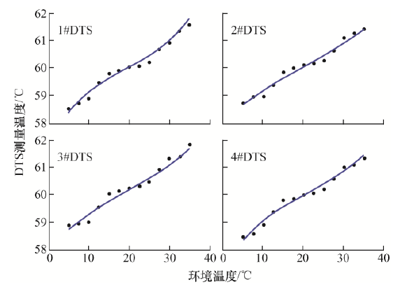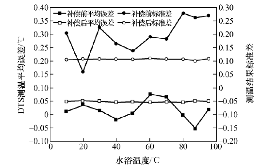 (3) 通过三次曲线拟合得到了温度补偿曲线,使得各台DTS装置在60 ℃恒温水浴中平均误差下降36%,最大误差下降85%。补偿后四台DTS温漂最大误差比补偿前下降约33%。