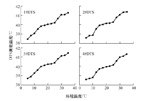 | 图5 DTS测量温度随环境温度变化曲线(水浴温度40 ℃) |