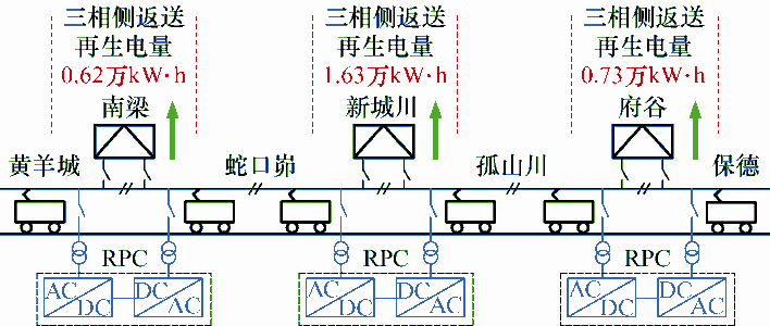 牵引变电所经过RPC平衡后三相侧再生制动能量分布图