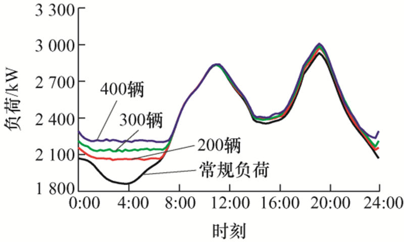 不同充电数量下的配电网负荷曲线