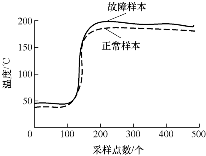 如图7 所示,该图像为低压开关柜绝缘故障电缆接口和电缆室的温度数据统计图,通常发生绝缘故障时,电路常常会发生短路现象,线路会快速升温,使线路长时间处于高温状态,会达到200 ℃ 左右。