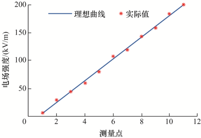 由表2中结果可知,按照文章所设置的临界电场报警阈值,实际测得的最小安全距离要比理论值大0.7~1.6 m,相对误差在25%以内,表明按照仿真计算结果设置最小安全距离下的临界电场阈值比较合理,且留有一定的安全裕度。