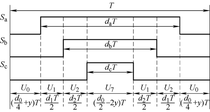 图3 是SVPWM中零矢量修正图[18 ] ,为控制环流,在BIC的零矢量中添加修正值y ,经计算得到第i 个BIC的零矢量占空比为