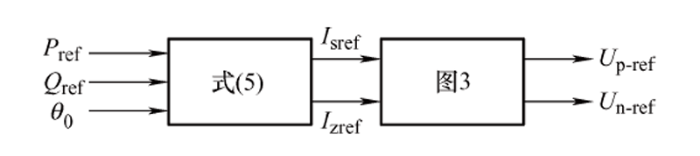 (5) $~\left\{ \begin{align} & {{I}_{\text{sref}}}=\frac{2{{P}_{\text{ref}}}}{3{{U}_{\text{sref}}}\cos \varphi }\sin ({{\omega }_{0}}t+{{\theta }_{0}}-\varphi ) \\ & {{I}_{\text{zref}}}=\frac{2{{P}_{\text{ref}}}}{3{{U}_{\text{dc}}}} \\ \end{align} \right.$