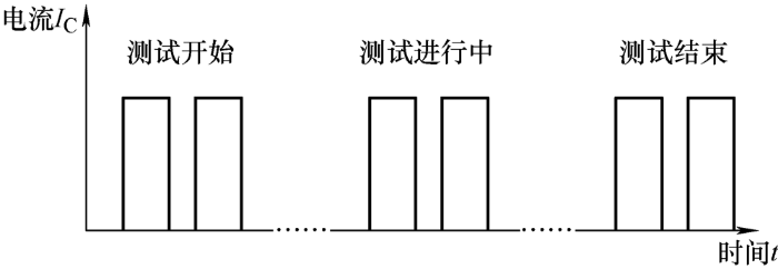 根据不同的与老化循环相关参数的范围来安排通断时间,即不同的老化控制策略,所得到的预测寿命往往也会有不同结果[16]。目前,常用的功率循环测试的老化控制策略主要有四种,分别是固定导通关断时间策略、固定壳温波动策略、固定功耗策略与固定结温波动策略。在初始测试条件相同的情况下,对同种类型的器件使用四种老化控制策略,得到的寿命估计值相差很大,固定结温波动策略得出的寿命估计周期数可达固定导通关断时间策略的三倍之多。由此也可以得出,在四种老化控制策略中,对IGBT器件质量最严苛的是固定导通关断时间策略。该策略要求以固定不变的设定时间间隔通断负载大电流,以获得老化过程中的退化数据。考虑到研究结果的实用性与可靠性,本试验采用的也是该策略。固定导通关断时间的控制时序如图3 所示。