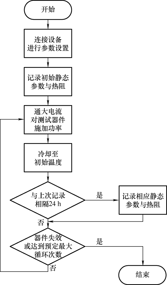 该功率循环试验采用的是固定导通关断时间策略,试验流程图如图7所示。