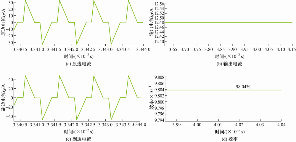 输出电压400 V,变压器原副边电流、输出电流平均值与效率