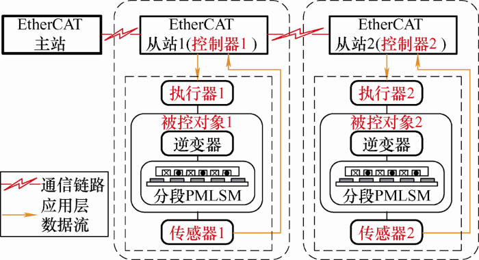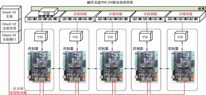 磁浮交通系统对控制精度具有较高的要求。因此,对应于磁浮线路的分段长定子,样机的分段初级之间应具有良好的同步性能和低延迟的通信能力。这样PMLSM的次级就能够精确地运动,模拟在轨道上运行的磁浮交通车辆,从而能够快捷简易地部署和验证磁浮交通直线运动控制算法。