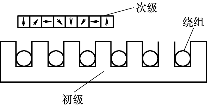 如图2所示,当电流通进初级绕组后,在气隙中就会形成行波磁场,其可由如下方程描述