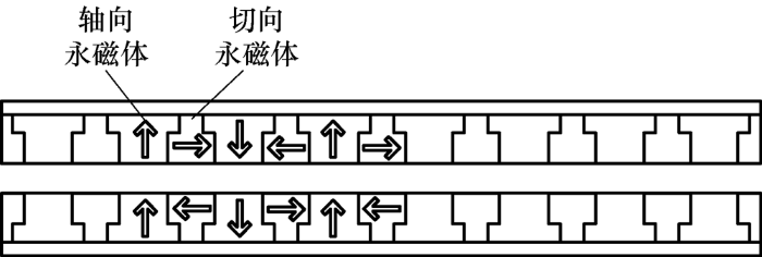 磁浮交通牵引驱动系统中使用的是PMLSM,其基本机制与原理和其他场景中使用的PMLSM完全一致。因为PMLSM的次级需要产生励磁磁场与行波磁场相互作用,所以在设计和制造时将Halbach阵列磁体作为次级的一部分来考虑[12]。