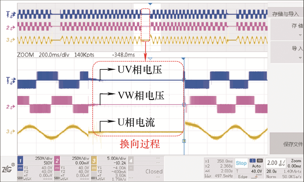 次级下行换向上行工况的电压电流波形