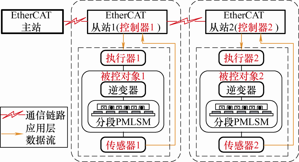 基于EtherCAT的双段PMLSM驱动系统仿真示意图