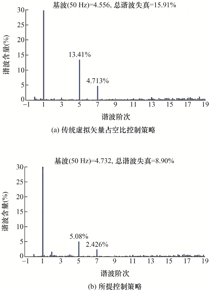 ... ⇓ ⇓ -17 ]通过构造虚拟电压矢量虽然有效抑制了谐波电流,提升了电流控制精度,但同时也消除了控制集中用于调节谐波子空间分量的电压矢量,因此,谐波子空间分量本质上属于开环控制.在实际系统中,死区效应和变流器管压降等非线性因素会导致最终合成的电压矢量在谐波子空间的幅值非零,进而产生谐波电流[18 -19 ] .由于谐波子空间开环控制,上述产生的谐波电流将无法得到有效抑制,从而限制了控制系统性能的提升. ...