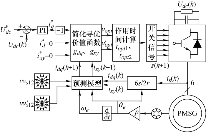 (6) ${{g}_{dq}}={{\left| i_{d}^{*}-{{i}_{d}}(k+1) \right|}^{2}}+{{\left| i_{q}^{*}-{{i}_{q}}(k+1) \right|}^{2}}$
