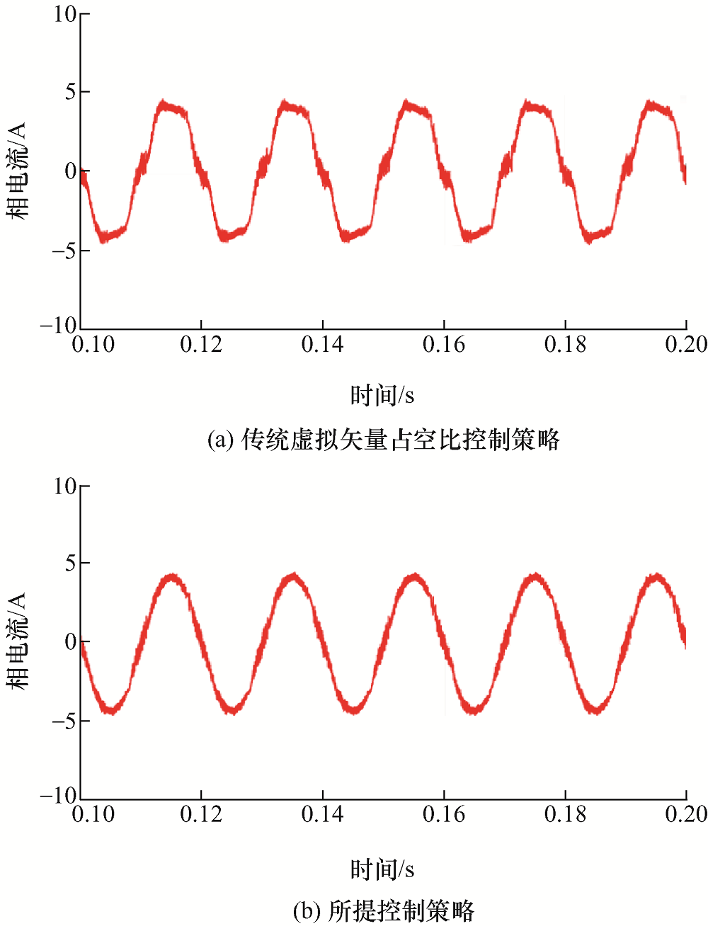 | 图7 额定转速下定子电流仿真波形 |
