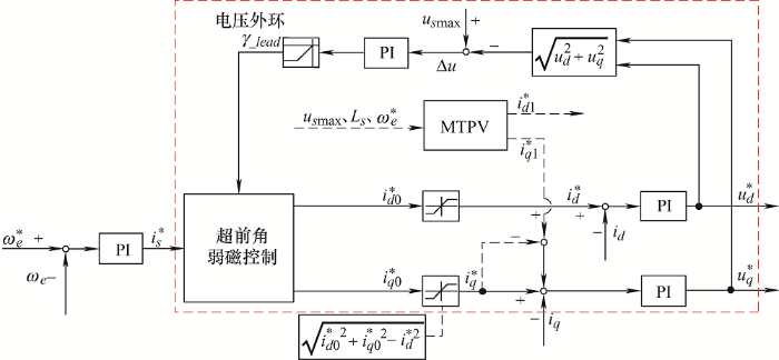 超前角结合MTPV的复合弱磁控制策略的控制框图如图4 所示。