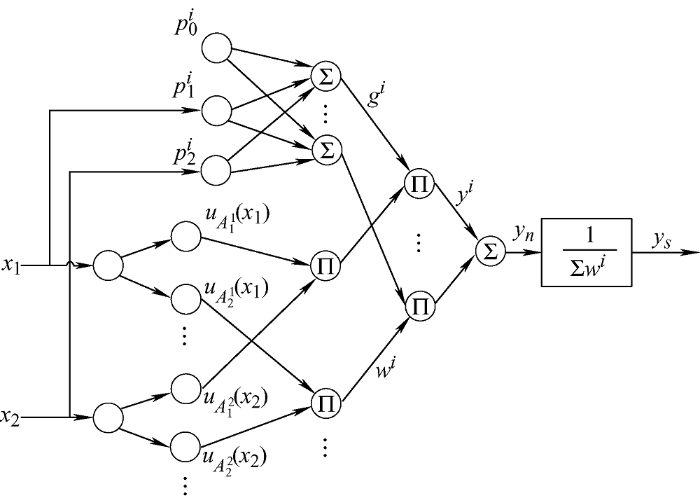 (19) ${{w}^{i}}=\prod\limits_{j=1}^{2}{{{u}_{A_{j}^{i}}}\left( {{x}_{j}} \right)}$ j =1, 2;i =1, 2, ⋯, m