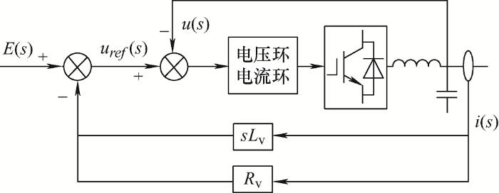 (9) $\begin{align} & {{u}_{\text{ref}}}(s)=E(s)-i(s)({{R}_{\text{v}}}+{{L}_{\text{v}}})= \\ & E(s)-i(s){{Z}_{\text{v}}}(s) \end{align}$