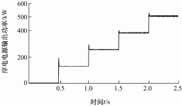 (2) 通过参数优化将系统设计为二阶临界阻尼系统,最终使岸电电源输出功率能够无超调的达到设定值,相比于基于Droop控制的逐级切换方式,能够有效避免对发电机造成逆功率,实现了船舶负载的平滑转移。