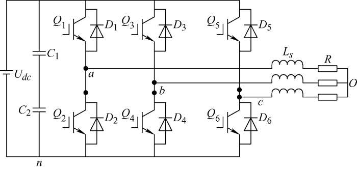 ... 将电机等效为阻感性负载,如图5 所示,为电机逆变器的拓扑结构,电机在零矢量作用期间,abc 三相电路可等效为零输入电路.以Ⅰ扇区为例,如图6 所示,可以得到一个开关周期内abc 三相电压到母线负极的电压U an 、U bn 和U cn ,中性点的电压U on ,a相电压U ao ,a相电流ia ,同理可得bc相电压U bo 、U co 以及bc相电流ib 、ic .由图6 中a相电压U ao 的波形可知,abc三相电流与电压矢量位置有关[12 ] ,即与电机的角度位置有关.因此,可以通过零检测矢量作用期间的abc三相电流,得到估计的角度位置. ...