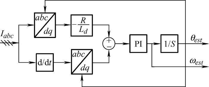 (5) $f\left( {{\theta }_{est}} \right)=LPF\left( {{i}_{qinest}}\sin \left( {{\omega }_{in}}t \right) \right)\approx \frac{{{u}_{in}}\left( {{L}_{q}}-{{L}_{d}} \right)}{2{{\omega }_{in}}{{L}_{q}}{{L}_{d}}}{{\theta }_{est}}$