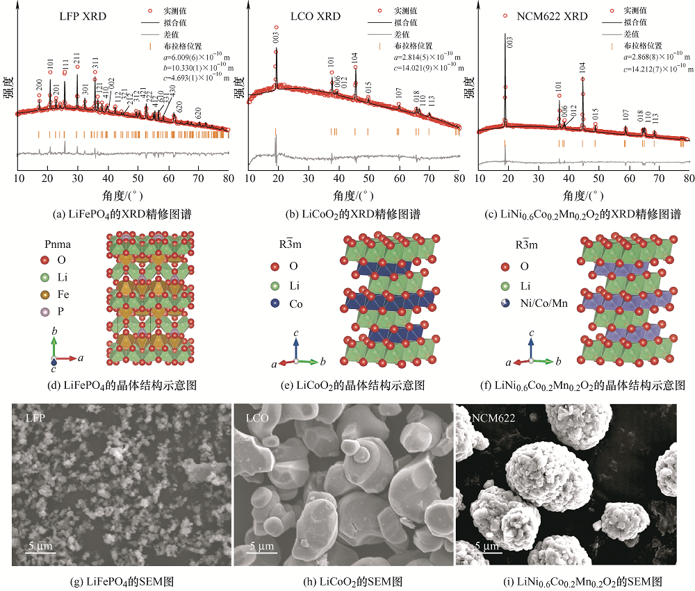 图1 LiFePO4、LiCoO2和LiNi0.6Co0.2Mn0.2O2材料的结构与形貌 |