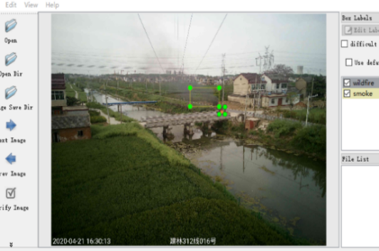 Pascal VOC和COCO是目标检测网络用于训练、检测的常用数据集,但其大多来源于日常生活,没有专门用于输电线路通道隐患目标识别的图像数据集。为防止数据集不符合实际情况造成的目标检测模型精度不高的情况发生,本文通过LabelImg软件在采集图像上标记隐患目标,制作目标识别训练集,标记操作界面如图6所示。