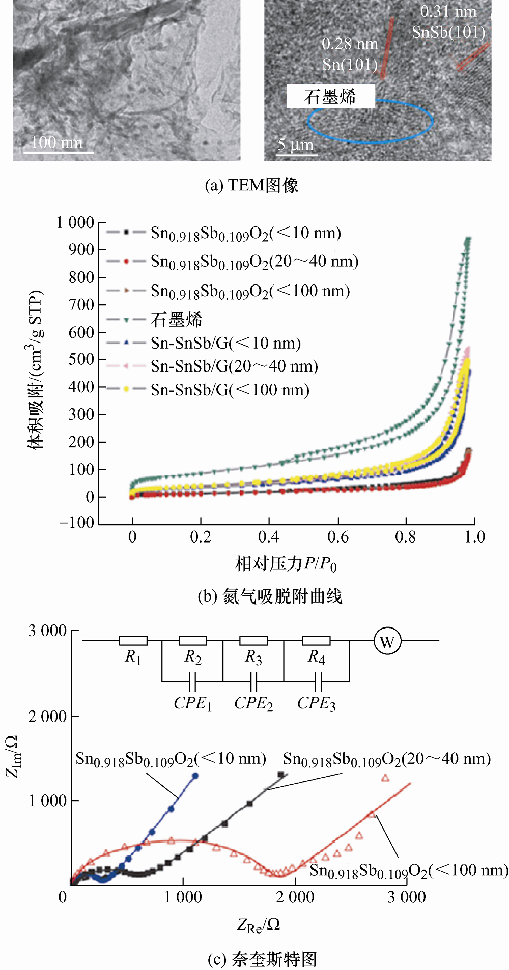 SnSb合金颗粒/石墨烯的形貌、比表面积和电化学性能表征