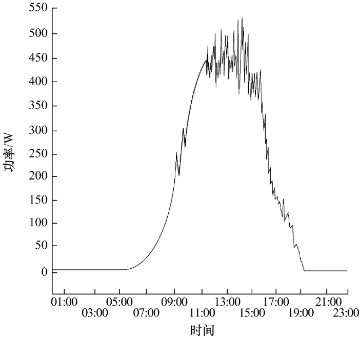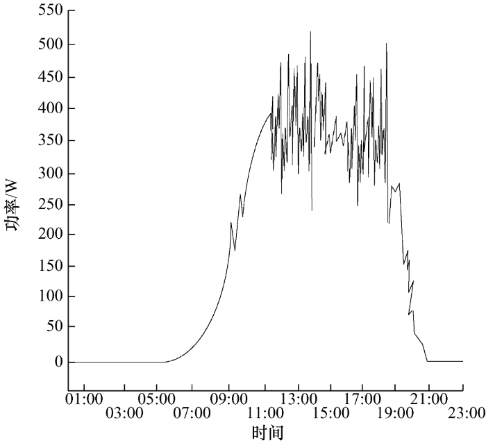 为更加清晰看出本设计系统的优越性,通过查阅资料和实地检验得到传统方法在白天发电的有功功率仿真如图5 所示。