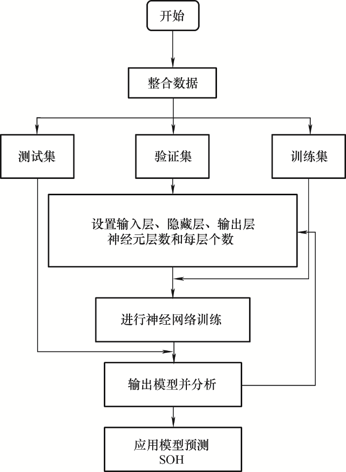 由于SOH在实际应用中难以直接测量,采用神经网络的方法则无需考虑锂离子电池内部电化学反映的老化机理带来的复杂影响,只需通过电池多次充放电的老化过程中所获得的相关数据,通过机器学习的方法建立输入量与输出量的非线性映射关系,具有估算精度高、泛化能力强的优势。