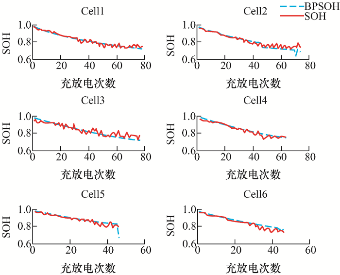 (3) 最后,使用相同体系的电池模型,在仿真平台中进行了重复试验,并使用本文方法对曲线中相同的特征值和SOH进行训练和验证,证明了本文方法的普遍性。