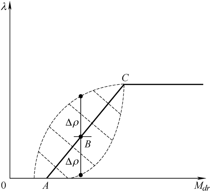 激励水平是影响需求响应波动量的主要因素,用户的响应心理及响应的积极程度很大程度上取决于综合运营商给予的补偿政策。图1 是需求响应量$\lambda $ 、需求响应波动量Δρ 与激励水平Mdr 的关系。图1 中实线部分为需求响应的期望值,虚线部分是需求响应不确定性波动量。