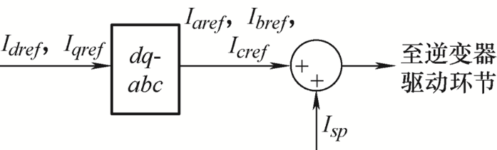 图1 为含特征信号注入的逆变器控制框图,在电流内环控制器中添加注入特征信号的附加控制策略。在对电流参考值Idref 和Iqref 做dq -abc 旋转变换,得到所需的Iaref 、Ibref 、Icref ,再与所注入的特征信号耦合,得到PWM控制信号,如图2 所示。所提的谐波注入环节是与分布式电源的自身控制环节相叠加使用的,不会影响分布式电源自身的控制环节,能适配各种控制方式的分布式电源。