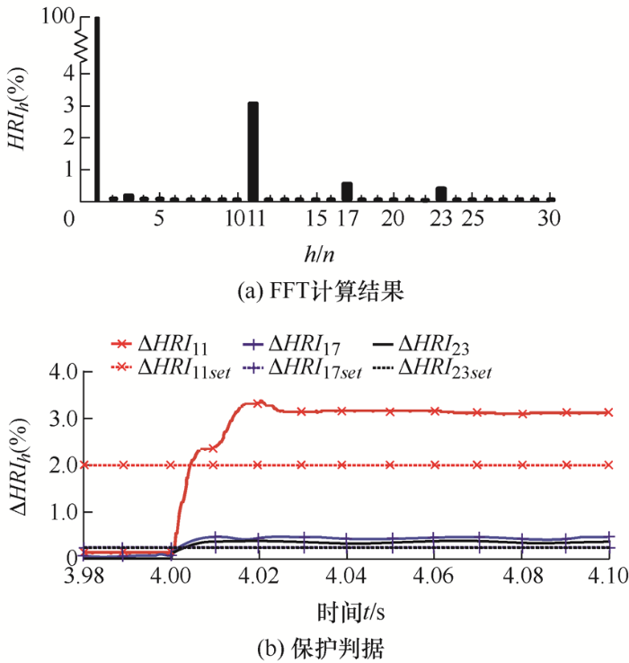 式中,$\Delta HR{{I}_{hset}}$ 为特征次信号电流谐波含有率差量的整定值。